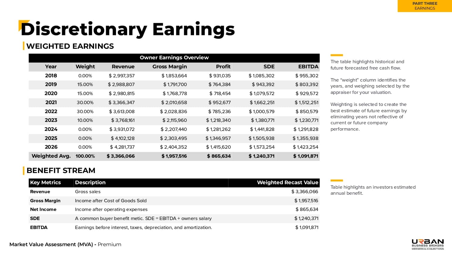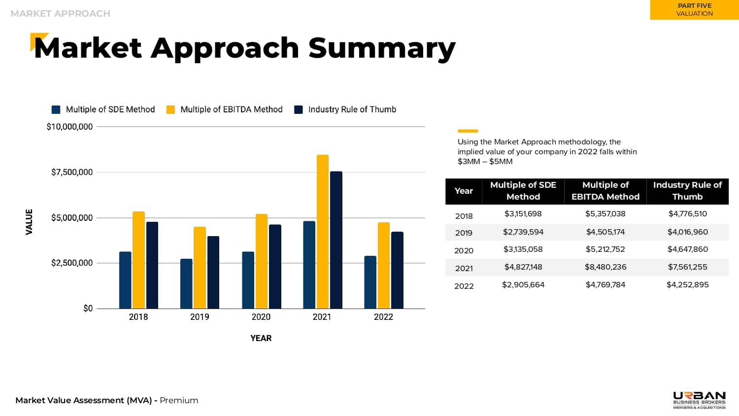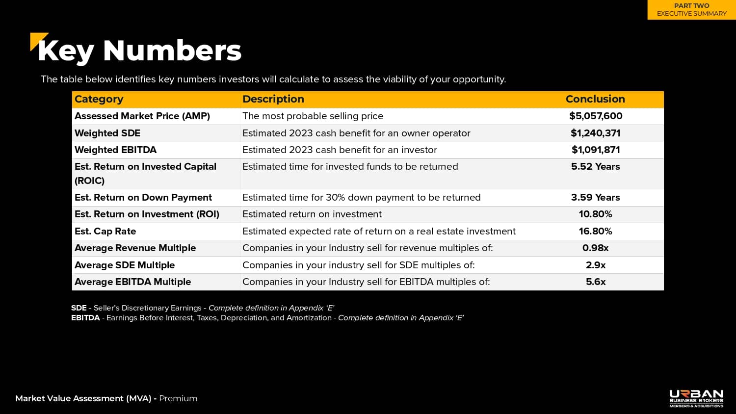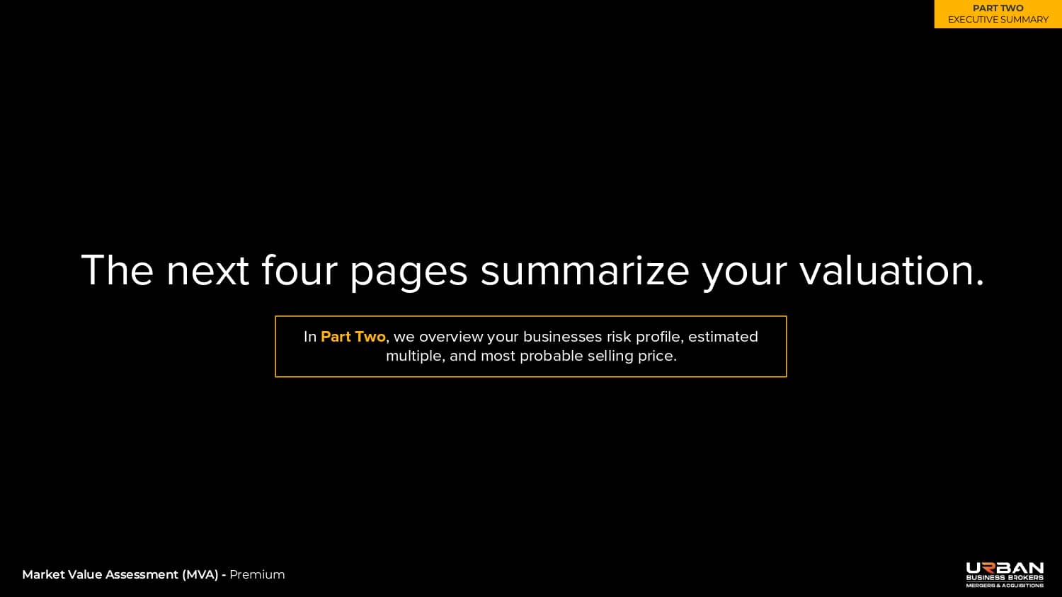 This section outlines the exact range of values that buyers will be willing to pay for your business.