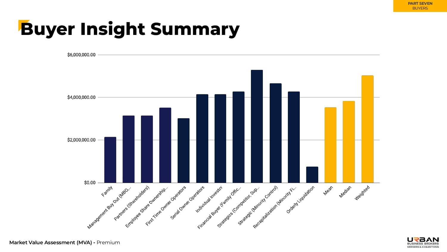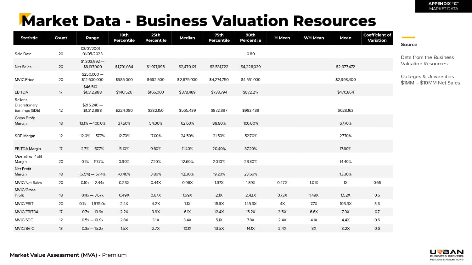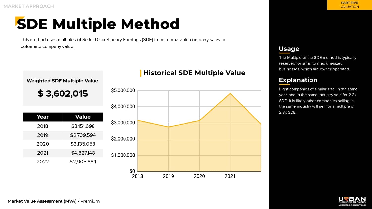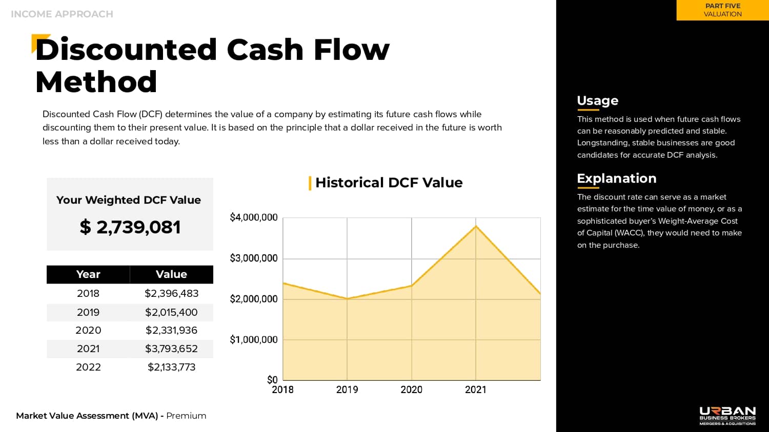 This section outlines the exact range of values that buyers will be willing to pay for your business.