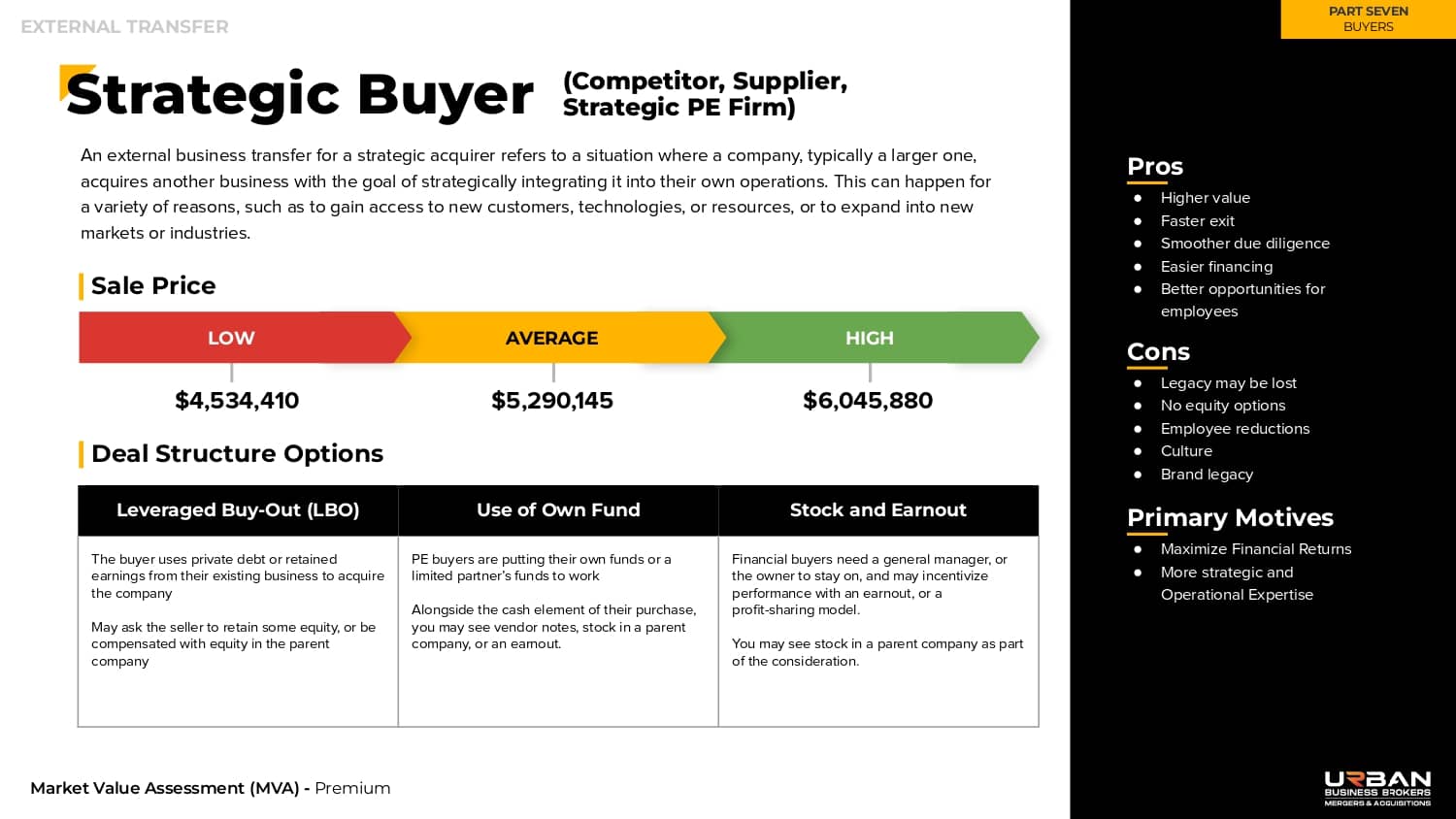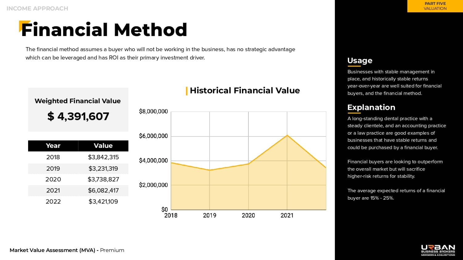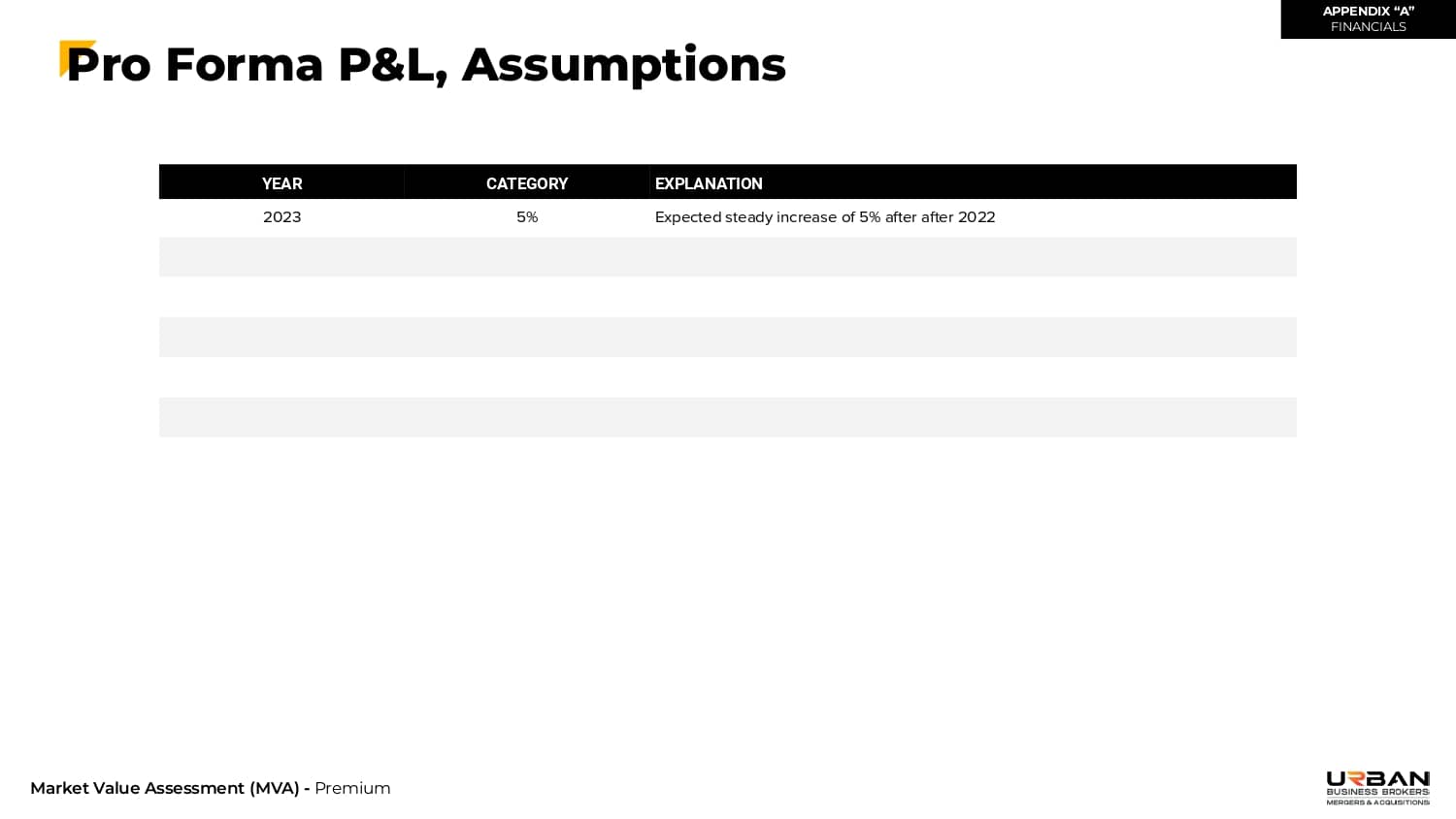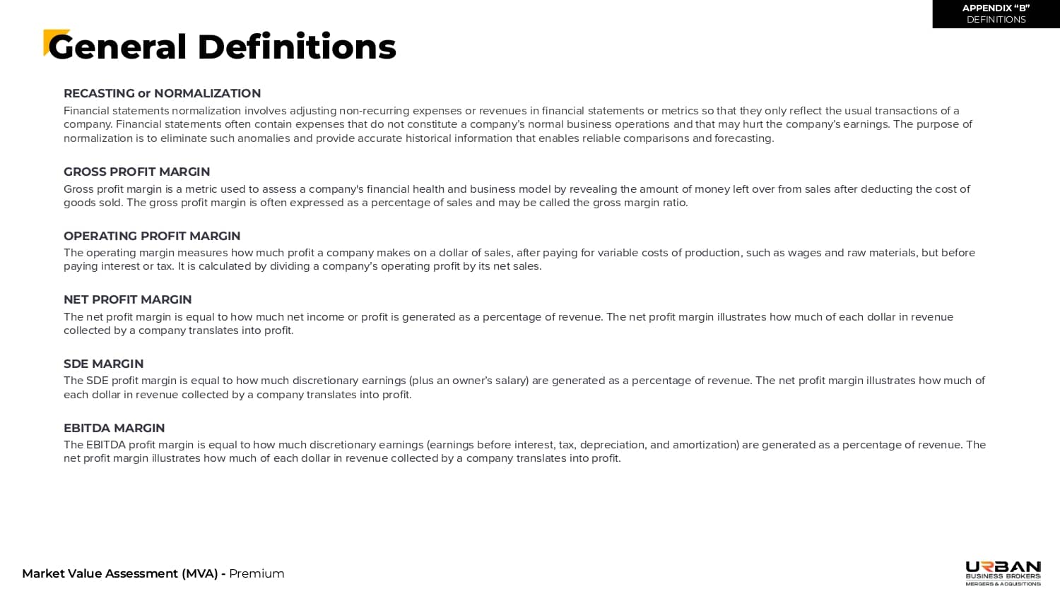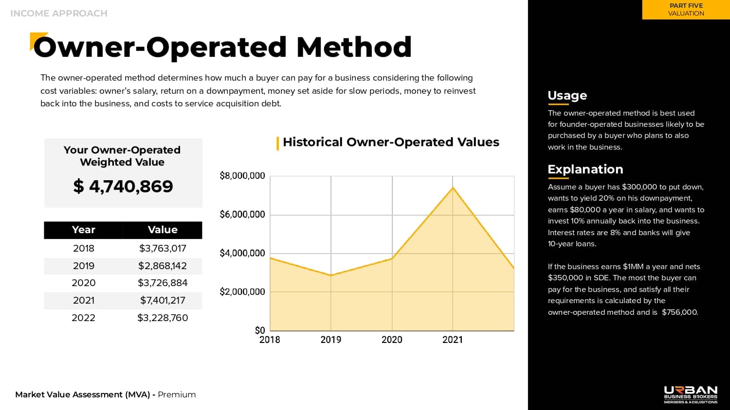 This section outlines the exact range of values that buyers will be willing to pay for your business.