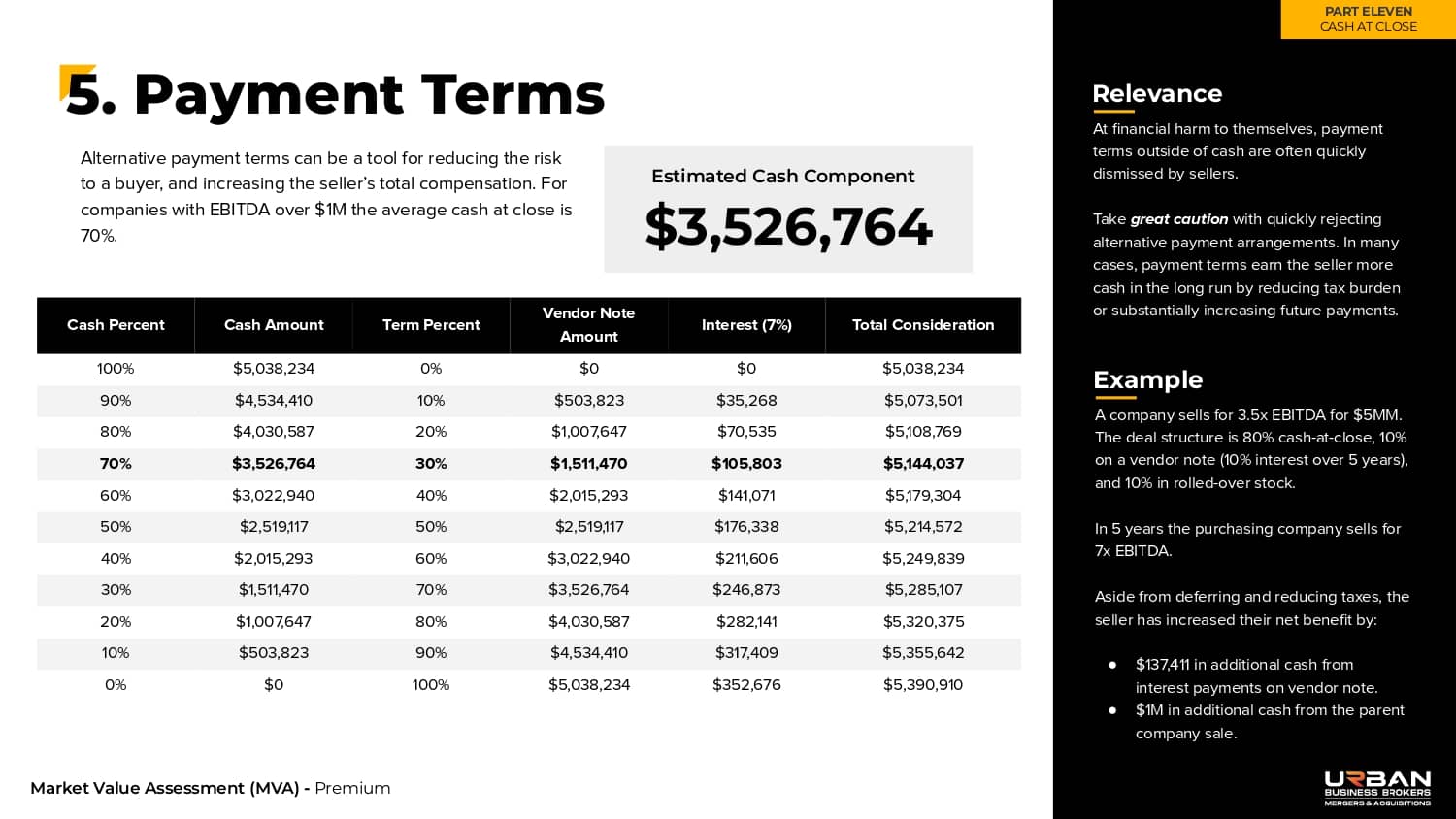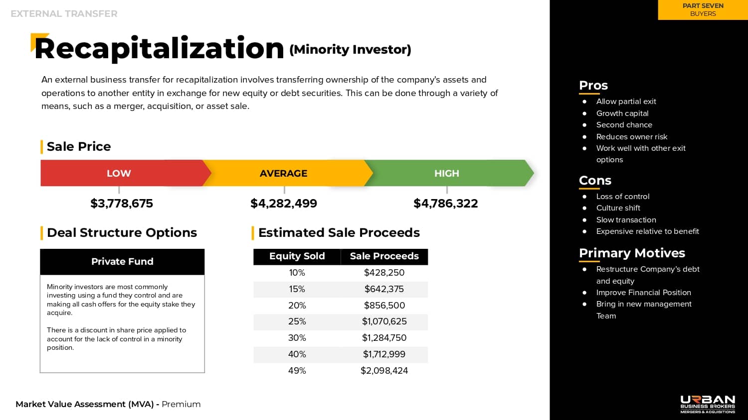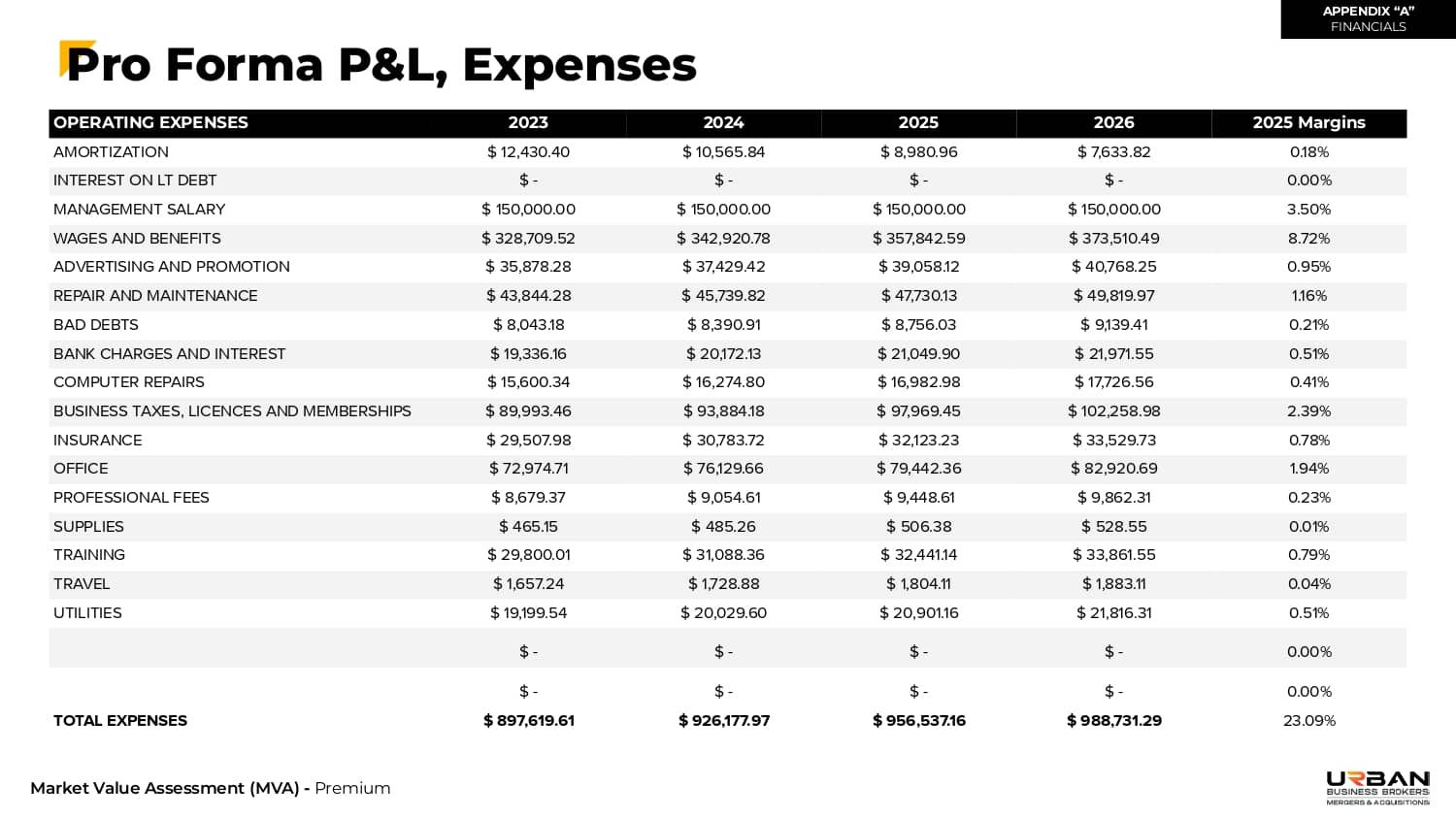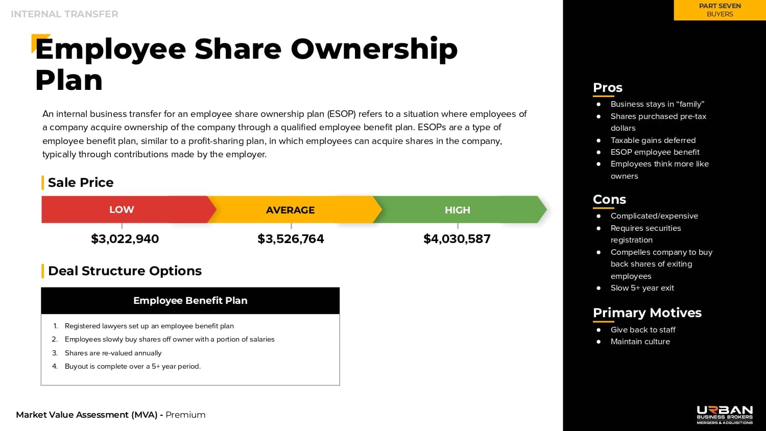 This section outlines the exact range of values that buyers will be willing to pay for your business.