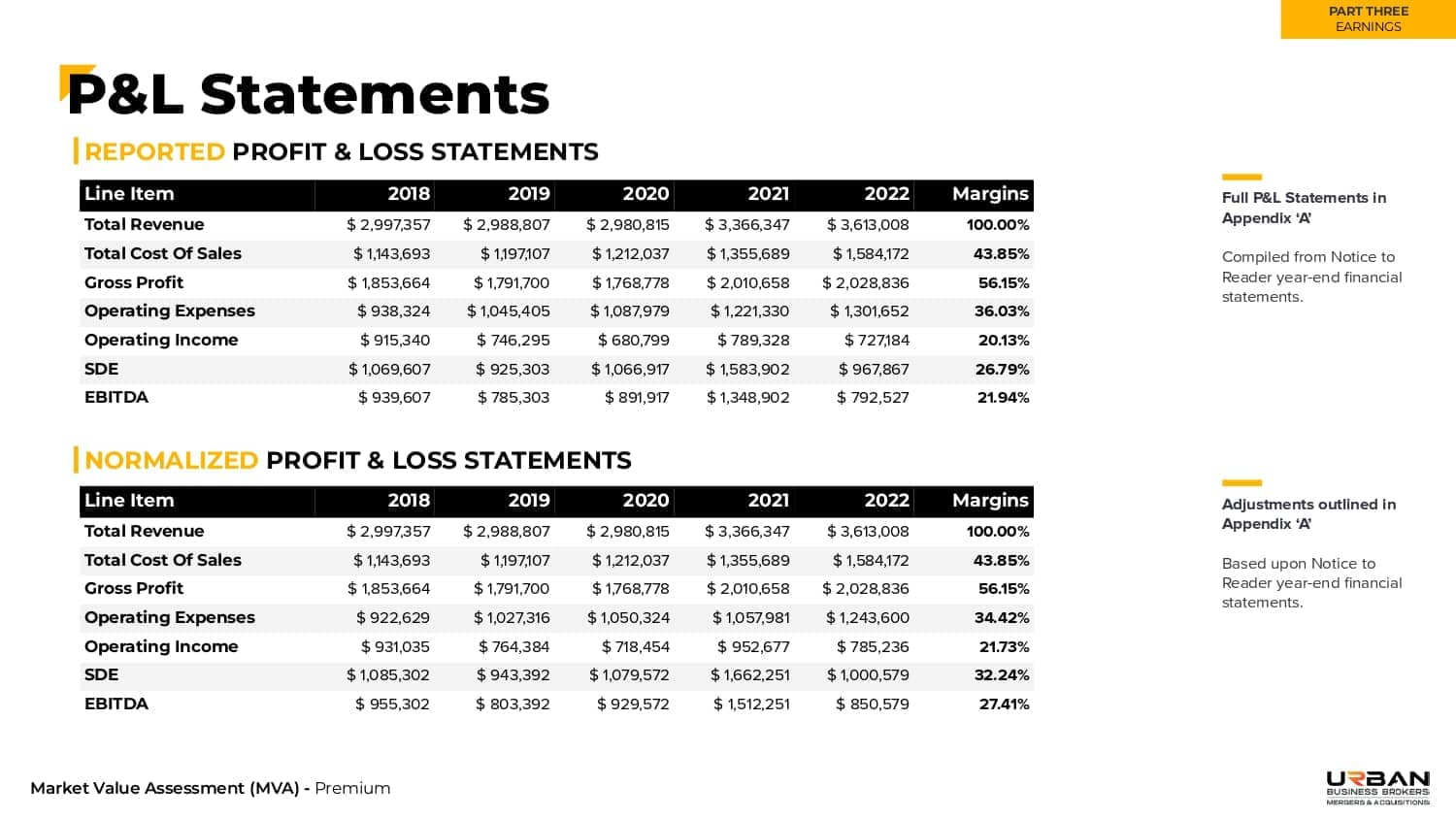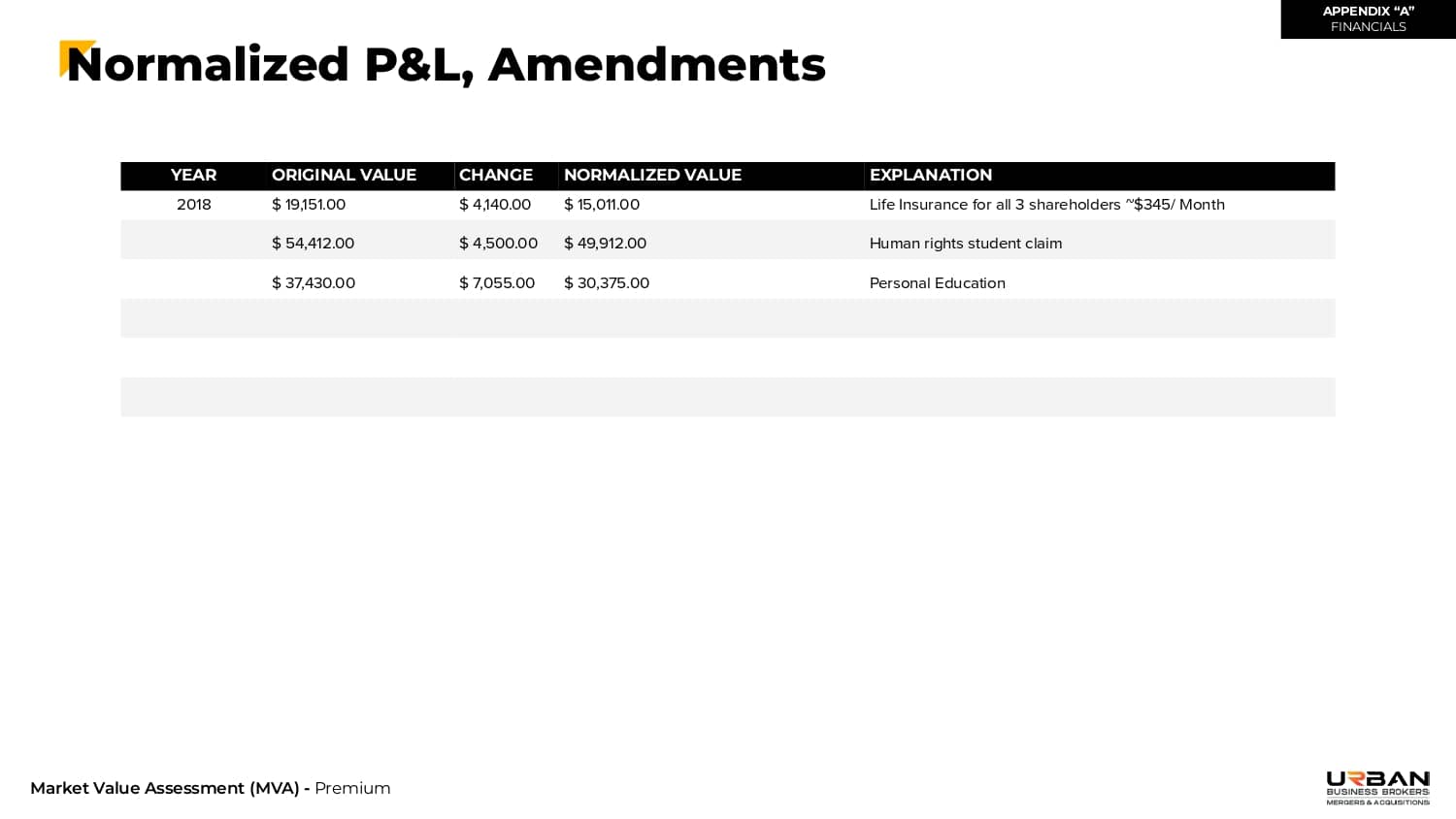 Our analysts normalize (adjust) your reported financials based on certain parameters to identify the true earning potential of your firm.