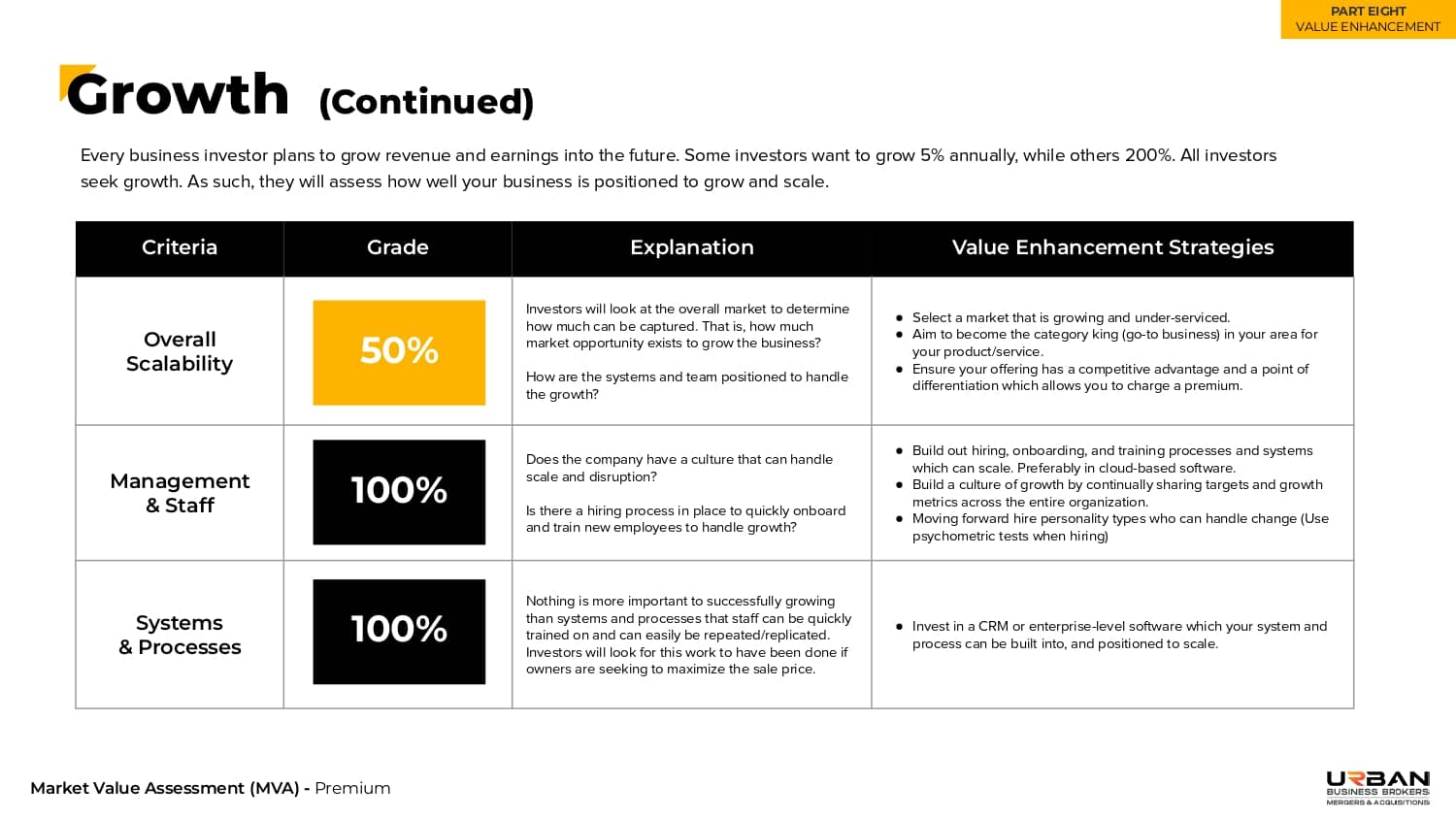 A step-by-step guide for increasing company value, specific to your business.