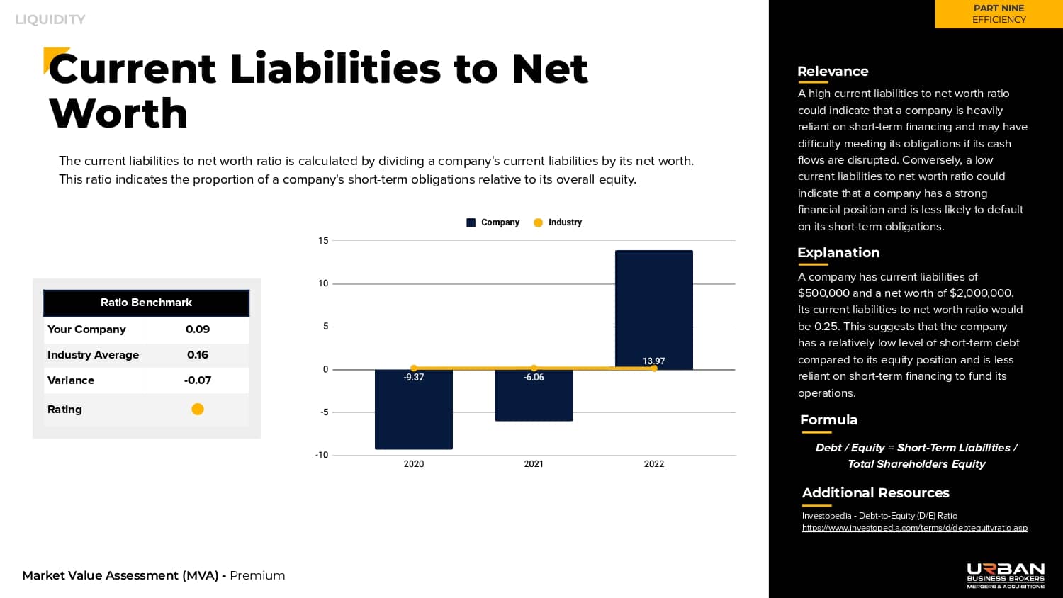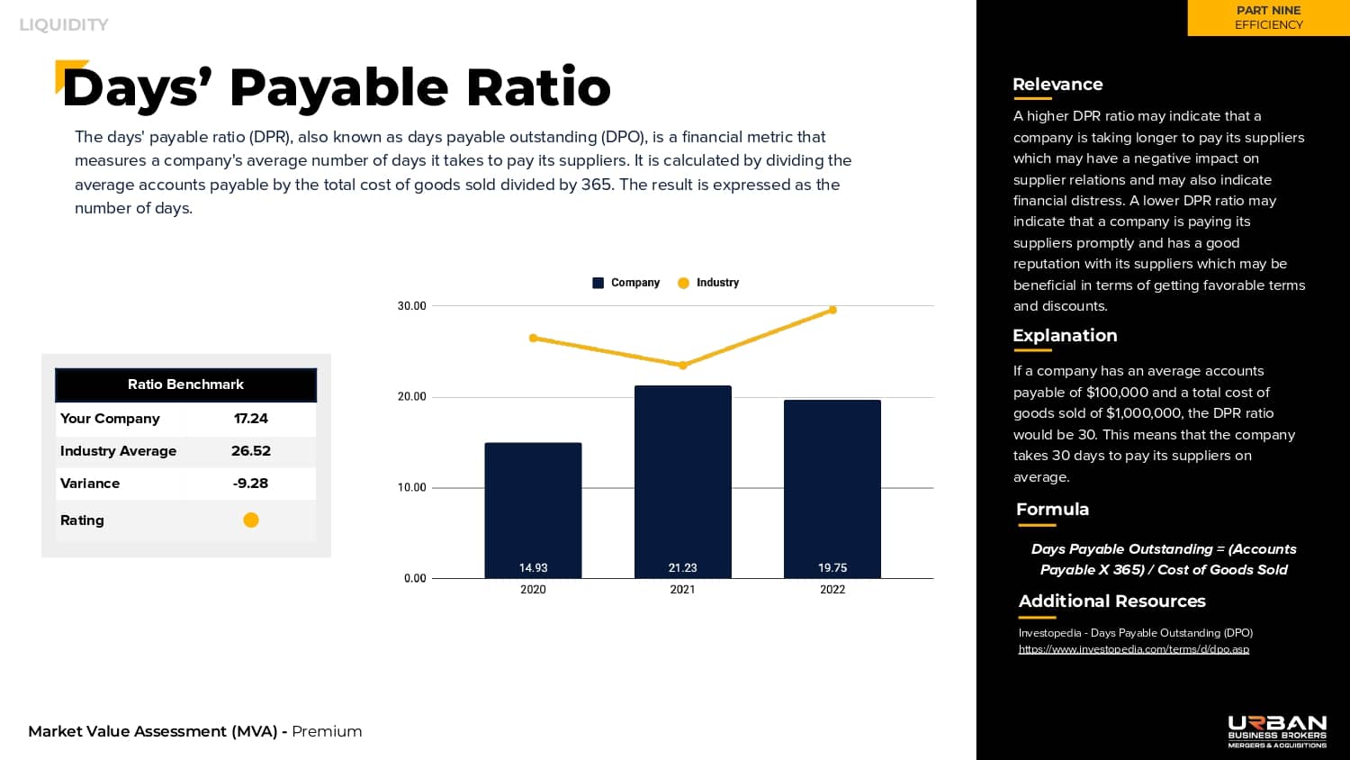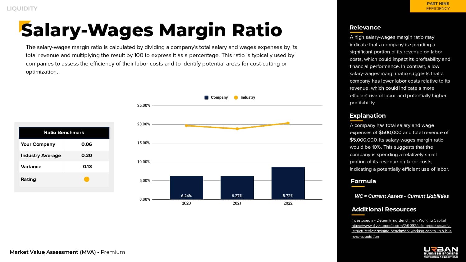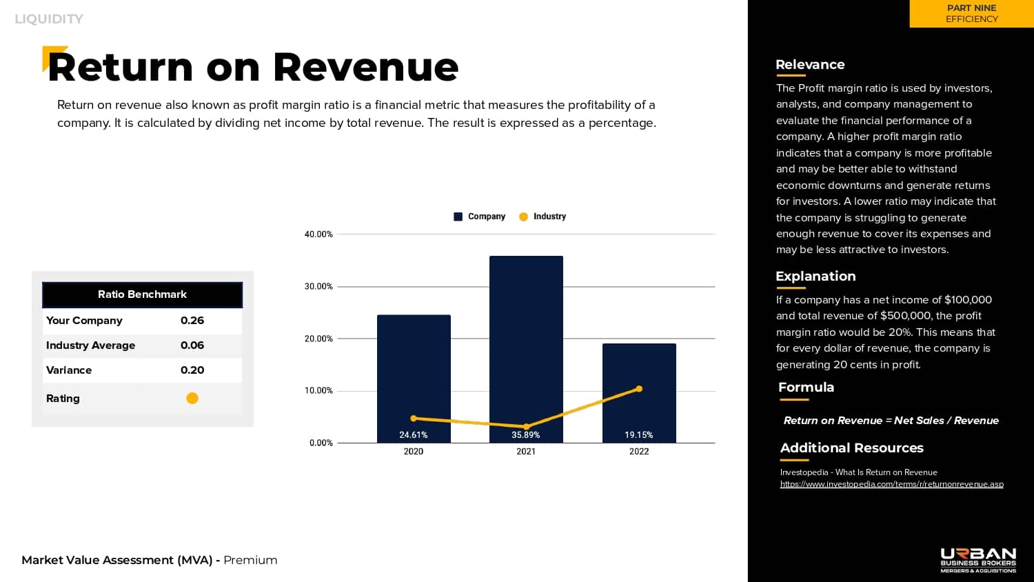 Twenty industry ratios are utilized to grade your company based on efficiency.