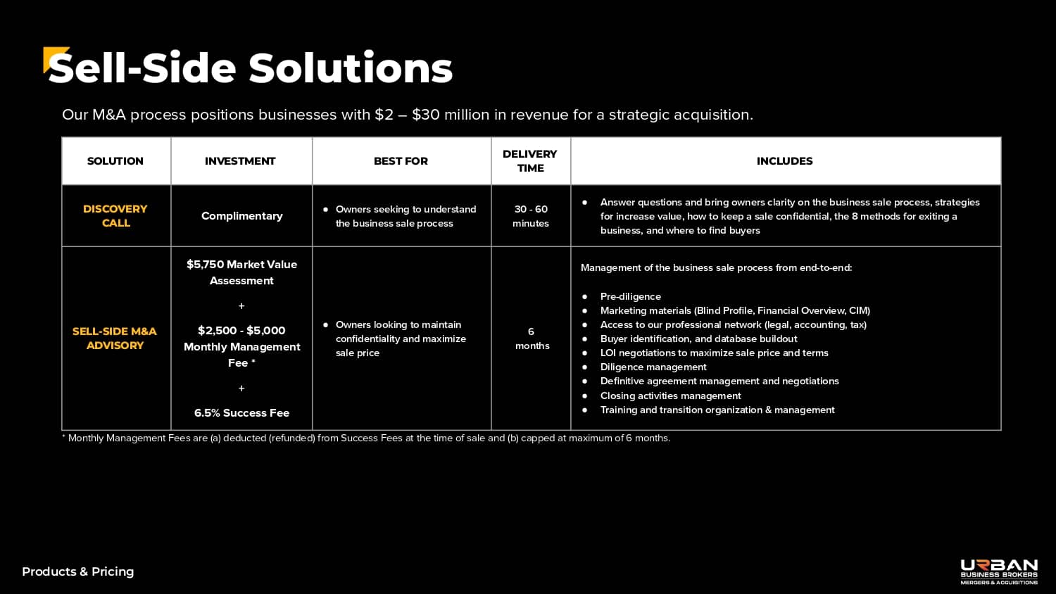 Sell-Side Advisory – Success Fee *