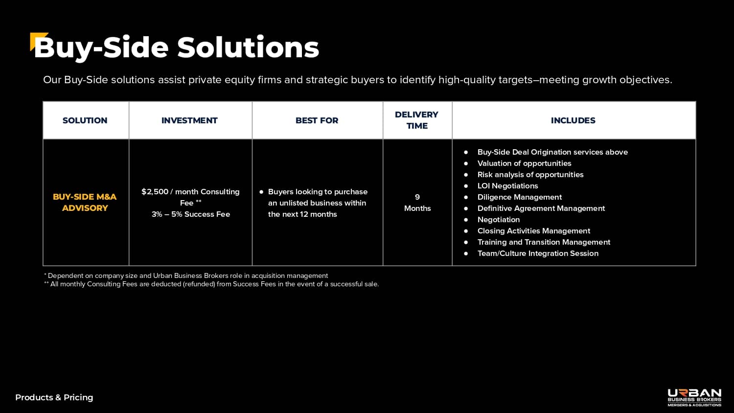 Buy-Side Advisory – Success Fee